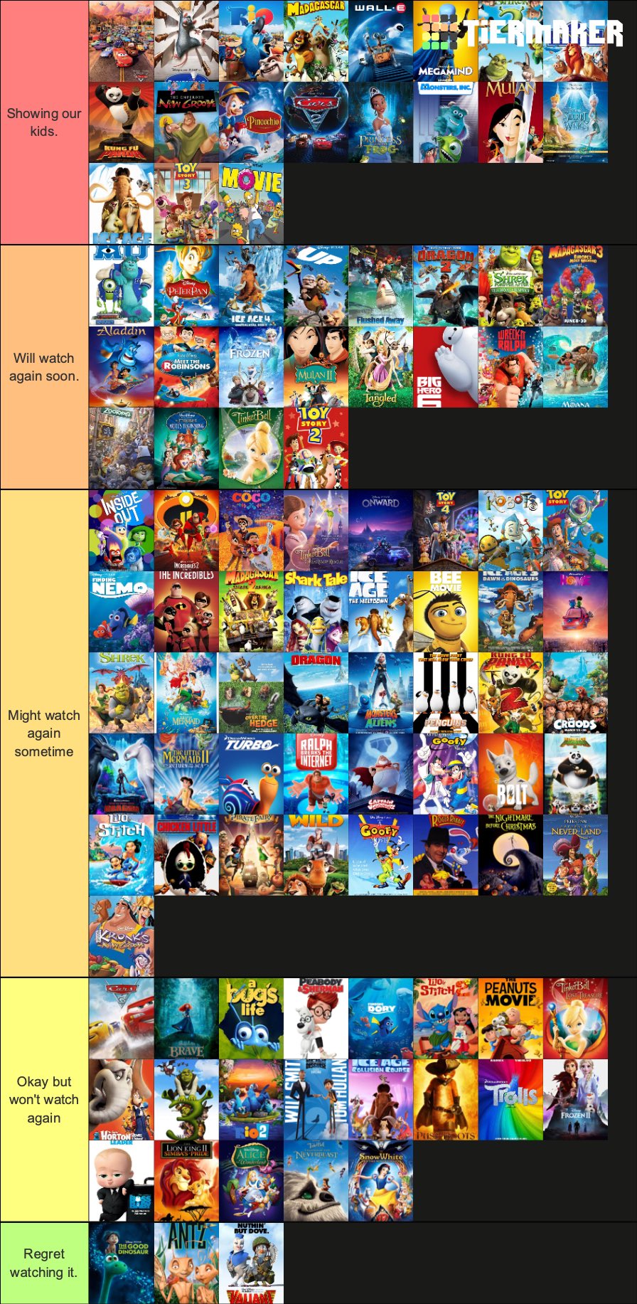 Create A Disney Pixar Dreamworks Movies Tier List Tiermaker